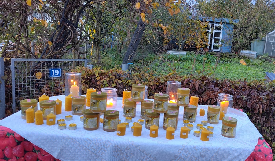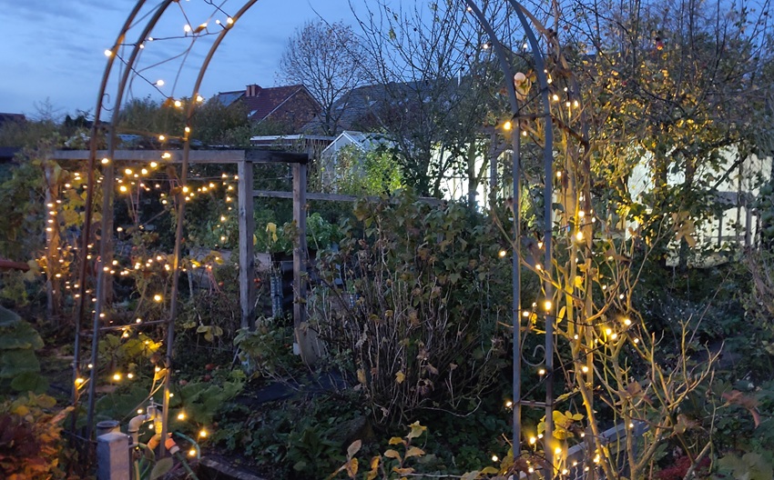 Mit vielen Mitgliedern, Freunden und Gästen haben wir am 26. Oktober von 16 bis 19 Uhr unser erstes Lichterfest gefeiert. Es war stürmisch und etwas regnerisch. Aber dennoch haben die Lichterketten und die Teelichter in den Gärten und an den Wegen ihre Wirkung nicht verfehlt. Unsere Anlage erstrahlte. Bei Glühwein, Kaffee, Würstchen und Kuchen kamen wir ins Gespräch, tauschten Stauden und Marmeladen. Herzlichen Dank an Veronika, Markus, Sieglinde und Andrea, die das Fest vorbereitet haben.
